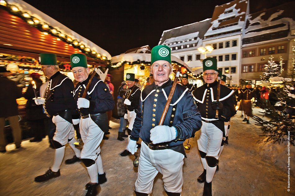 Heute erleben Sie den Zauber der bekannten Bergparaden im Erzgebirge, wo Berg- und Hüttenleute in ihren prächtigen Uniformen durch die historischen Städte ziehen.
