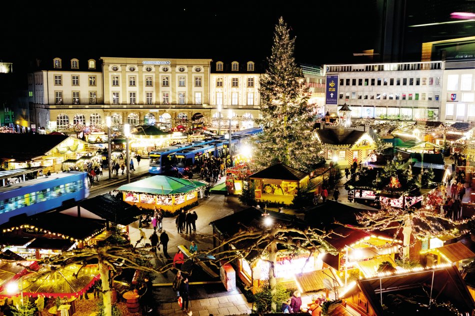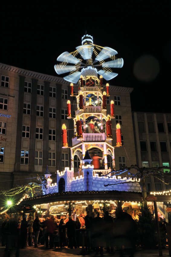 mit den weltberühmten Geschichten der Brüder Grimm verknüpft. Jedes Jahr steht ein anderes der beliebten Märchen im Mittelpunkt. 2025 ist es – wer hätte es gedacht – Frau Holle! DerMärchenweihnachtsmarkt lädt dann bis zum 30. Dezember zu romantischen Stunden zu zweit ein. Neben heißem Glühwein und Mandelduft erwartet Sie natürlich auch sonst wieder alles, was den Kasseler Märchenweihnachtsmarkt zum beliebtesten seiner Art in Hessen gemacht hat: Zwischen Königs- und Friedrichsplatz verwandelt sich die Kasseler City in ein funkelndes Lichtermeer, auf das Sie vom Riesenrad aus eine atemberaubende Aussicht genießen. Im lauschigen Märchenwald können Sie in uriger Atmosphäre den Abend verbringen, während schon von weitem die weltgrößte Märchenpyramide grüßt. ©Kassel Marketing GmbH